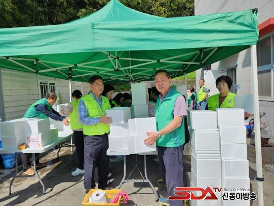 [½Åµ¿¾Æ¹æ¼Û ¿©¼ö=±è±â³² ±âÀÚ] 24ÀÏ ±ÝÀÏ ¿ÀÀü 6½Ã30ºÐºÎÅÍ ¼Ò¶ó¸é»ç¹«¼Ò¿Í ¼Ò¶ó»õ¸¶À»È¸´Â 49°³ ¸¶À»ÀÇ ¾î·Á¿î ÀÌ¿ô(200°¡Á¤), ¼Ò¶óº¹Áö°ü, °¢ ¸¶À»°æ·Î´ç(57°³¼Ò), ½Ç¹öºô¿ä¾ç¿ø, Áø´Þ·¡¿ä¾ç¿ø, ¿¡µ§µ¿»ê, ¹Ð¾Ë»ç¶û¿ä¾ç¿ø, µ¿¹é¿ø µî¿¡ ¿­¹«±èÄ¡(3kg, 400°³)¸¦ ´ã¾Æ ³ª´® Çà»ç¸¦ ½Ç½ÃÇÏ¿´´Ù.