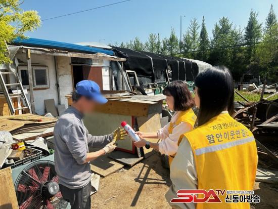 ƯÈ÷, ÇÔ¾È ÀÌ¿ô¿¬°á´ÜÀÌ °íµ¶»ç À§ÇèÀÚ °¡Á¤¿¡ Á÷Á¢ ¹æ¹®ÇØ È­Àç¾ÈÀü¹°Ç°(½ºÇÁ·¹ÀÌÇü ¼ÒÈ­±â)¸¦ Àü´ÞÇϰí, »ç¿ë¹ý ±³À°°ú ÇÔ²² ¾ÈºÎ¸¦ È®ÀÎÇß´Ù. ¶ÇÇÑ ¹æ¹® »ó´ãÀ» ÅëÇÑ º¹Áö ¼­ºñ½º ¿¬°è¸¦ ÁøÇàÇØ ´Ü¼øÇÑ ¹°Ç° Áö¿øÀ» ³Ñ¾î »çȸÀû °ü°è ȸº¹ ¹× ¿¹¹æÀû µ¹º½ ü°è ±¸ÃàÀ» ¸ñÇ¥·Î Çß´Ù.