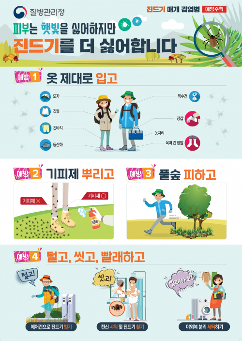 Áøµå±â ¸Å°³ °¨¿°º´Àº ÁÖ·Î º½Ã¶ ÂüÁøµå±â¿¡ ÀÇÇØ ÀüÆÄµÇ´Â SFTS¿Í °¡À»Ã¶ ÅÐÁøµå±â·Î ÀÎÇÑ ÂêÂê°¡¹«½ÃÁõÀÌ ´ëÇ¥ÀûÀÌ´Ù. SFTS´Â 6~14ÀÏÀÇ Àẹ±â¸¦ °ÅÃÄ 38µµ ÀÌ»óÀÇ °í¿­, ½Ä¿åºÎÁø, ±¸Åä, ¼³»ç µîÀÇ Áõ»óÀÌ ³ªÅ¸³ª¸ç, ÂêÂê°¡¹«½ÃÁõÀº À¯»çÇÑ Áõ»ó°ú ÇÔ²² Áøµå±â ¹°¸° ºÎÀ§¿¡ °ËÀº µüÁö(°¡ÇÇ)°¡ »ý±â´Â Ư¡ÀÌ ÀÖ´Ù.