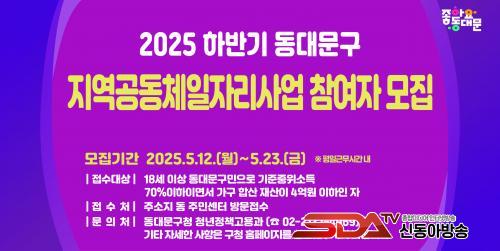 À̹ø »ç¾÷Àº ¿ì¸® µ¿³× Ä®°¥ÀÌ¡¤¿ì»ê¼ö¸®, Áß¼Ò±â¾÷¡¤¼Ò»ó°øÀÎ Ãë¾÷Áö¿ø »ç¾÷, ã¾Æ°¡´Â ¹æ¹®¼Òµ¶ »ç¾÷, ã¾Æ°¡´Â ´Ù¹®È ÀÌÇØ±³À°, ²ÞÀÚ¶÷°øµ¿À°¾Æ¹æ ½Ã¼³È¯°æ °ü¸®, ÀÚ¿øÀç»ý»ç¾÷, ¸¶À»¸¶´ç °¡²ÞÀÌ ¿î¿µ »ç¾÷ µî ÃÑ 7°³ ºÐ¾ß¿¡¼ ÃÑ 21¸íÀ» ¼±¹ßÇÑ´Ù. ÃÖÁ¾ ¼±¹ßµÈ Âü¿©ÀÚ´Â 7¿ù 1ÀϺÎÅÍ 10¿ù 31ÀϱîÁö ¾à 4°³¿ù°£ ±Ù¹«ÇÏ°Ô µÈ´Ù. ±Ù¹« Á¶°ÇÀº ÁÖ 5ÀÏ, 1ÀÏ 3½Ã°£ ¶Ç´Â 6½Ã°£ ±Ù¹«À̸ç 2025³â ÃÖÀúÀÓ±Ý(½Ã°£´ç 1¸¸ 30¿ø)ÀÌ Àû¿ëµÈ´Ù.