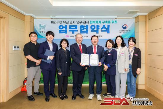 ÇԾȱº°ú ±¹¸³°¡¾ß¹®È­À¯»ê¿¬±¸¼Ò´Â 2023³â ¾÷¹«Çù¾à ü°áÀ» ÅëÇØ ÇÔ¾È °¡¾ß¸®À¯Àû ¹ß±¼Á¶»ç ¹× ¾Æ¶ó°¡¾ß ¿Õ¼º À¯ÀûÀÇ ½Çü ±Ô¸íÀ» À§ÇØ ÇÔ²² ÈûÀ» ¸ðÀ¸°í ÀÖ´Ù. À̹ø Çù¾à ü°á·Î ¾Æ¶ó°¡¾ß °ü·Ã ÇÙ½É À¯»êÀÇ °¡Ä¡ ±Ô¸í°ú ÇÔ²² ´Ù¾çÇÑ ¹æ½ÄÀ¸·Î ¸¹Àº »ç¶÷µé°ú °øÀ¯ÇÒ ¼ö ÀÖµµ·Ï Àü½Ã¡¤±³À° ºÐ¾ß±îÁö Çù·Â ¹üÀ§¸¦ È®´ëÇß´Ù.
