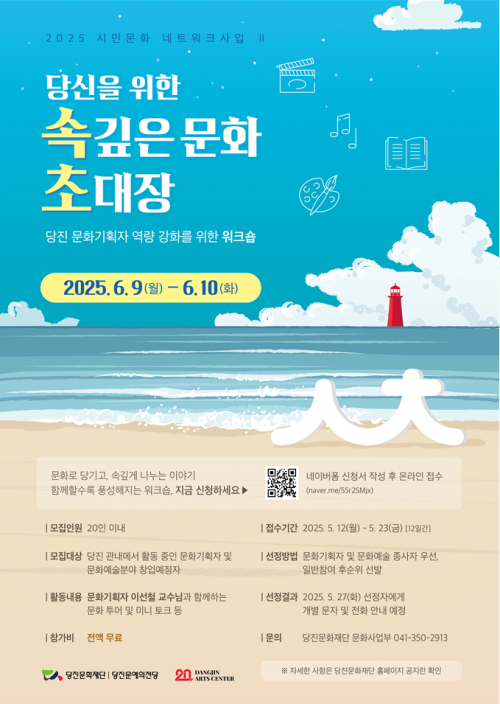 ¸ðÁý ´ë»óÀº ´çÁø °ü³»¿¡¼ Ȱµ¿ ÁßÀÎ ¹®È±âȹÀÚ ¹× ¹®È¿¹¼ú ´Üü Á¾»çÀÚ, ¹®È¿¹¼ú ºÐ¾ß â¾÷À» Áغñ ÁßÀÎ ¿¹ºñ â¾÷ÀÚÀ̸ç, Âü°¡ºñ´Â Àü¾× ¹«·á´Ù. ½ÅûÀº 5¿ù 12ÀÏ(¿ù)ºÎÅÍ 5¿ù 23ÀÏ(±Ý)±îÁö ¿Â¶óÀÎ ½Åû¼(³×À̹öÆû)¸¦ ÅëÇØ Á¢¼ö °¡´ÉÇÏ´Ù. ¼±Á¤ °á°ú´Â 5¿ù 27ÀÏ(È) °³º° ¿¬¶ôÀ» ÅëÇØ ¾È³»µÈ´Ù.