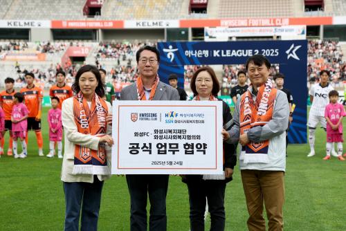 ¹Ú¹Ì¶û ȼºFC ´ëÇ¥ÀÌ»ç ±ÇÇÑ´ëÇàÀº ¡°È¼ºFC´Â Áö¿ª»çȸ¿Í ÇÔ²² È£ÈíÇÏ°í ¼ºÀåÇÏ´Â ±¸´ÜÀ» ÁöÇâÇϰí ÀÖ´Ù¡±¸ç,¡°À̹ø Çù¾àÀ» ÅëÇØ ȼº½Ãº¹ÁöÀç´Ü, ȼº½Ã»çȸº¹ÁöÇùÀÇȸ¿Í ÇÔ²² ´Ù¾çÇÑ ¹æ¸é¿¡¼ »çȸ°øÇå Ȱµ¿À» ÇÔÀ¸·Î½á, ½Ã¹Î ´©±¸³ª ¼Ò¿ÜµÇÁö ¾Ê°í ÇÔ²² Áñ±æ ¼ö ÀÖ´Â Ã౸ ¹®È ȯ°æÀ» Á¶¼ºÇϱâ À§ÇØ ³ë·ÂÇϰڴÙ.¡±°í ¹àÇû´Ù.