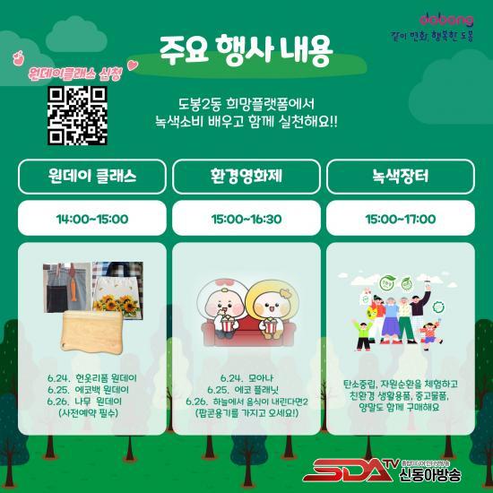 µµºÀ³ì»ö±¸¸ÅÁö¿ø¼¾ÅÍ¿¡¼µµ Ưº°ÇÑ È¯°æÀÇ ´Þ Çà»ç¸¦ ¿¬´Ù. 6¿ù 24ÀϺÎÅÍ 26ÀϱîÁö ¼¾ÅͰ¡ À§Ä¡ÇÑ µµºÀ2µ¿Èñ¸ÁÇ÷§Æû¿¡¼ ģȯ°æ »ýȰ¿ëǰ ¸¸µé±â ¿øµ¥ÀÌ Å¬·¡½º¿Í ³ì»öÀåÅÍ µîÀÌ ¿î¿µµÈ´Ù. °°Àº ±â°£ µµºÀ±âÀûÀǵµ¼°ü°ú ÇÔ²² ÇÏ´Â 'ȯ°æ¿µÈÁ¦'µµ À̰÷¿¡¼ ¿¸°´Ù.