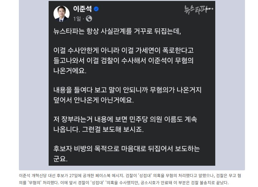 ÀÌÁؼ® °³Çõ½Å´ç ´ë¼± È帰¡ 27ÀÏ¿¡ °ø°³ÇÑ ÆäÀ̽ººÏ ¸Þ½ÃÁö. °ËÂûÀÌ '¼ºÁ¢´ë' ÀÇȤÀ» ¹«ÇøÀÇ Ã³¸®Çß´Ù°í ¸»ÇßÀ¸³ª, °ËÂûÀº ¹«°í ÇøÀǸ¦ '¹«ÇøÀÇ' ó¸®Çß´Ù. ÀÌ¿¡ ¾Õ¼­ °æÂûÀÌ '¼ºÁ¢´ë' 'ÀÇȤÀ» ¼ö»çÇßÁö¸¸, °ø¼Ò½ÃÈ¿°¡ ¸¸·áµÅ ÀÌ ºÎºÐÀº °ËÂû ºÒ¼ÛÄ¡·Î ³¡³µ´Ù°í ´º½ºÅ¸ÆÄ°¡ º¸µµÇß´Ù