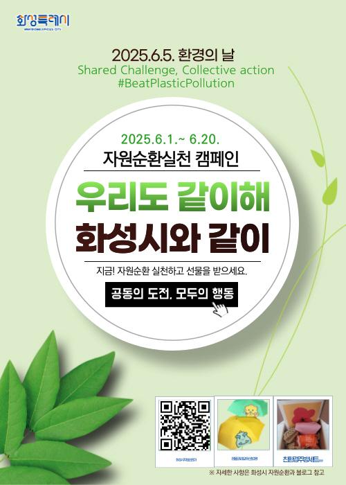 [½Åµ¿¾Æ¹æ¼Û=ÀÌÀçö±âÀÚ] È­¼ºÆ¯·Ê½Ã(½ÃÀå Á¤¸í±Ù)°¡ 6¿ù 5ÀÏ È¯°æÀÇ ³¯À» ¸Â¾Æ ¿À´Â 20ÀϱîÁö ½Ã¹Î°ú ÇÔ²²ÇÏ´Â ÀÚ¿ø¼øÈ¯½Çõ Ä·ÆäÀÎ ¡®¿ì¸®µµ °°ÀÌÇØ È­¼º½Ã¿Í °°ÀÌ¡¯¸¦ ÁøÇàÇÑ´Ù.