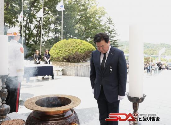 À̳¯ Çà»ç´Â ±¹¹ÎÀǷʸ¦ ½ÃÀÛÀ¸·Î, ¿ÀÀü 10½Ã Àü±¹¿¡ ¿ï¸° »çÀÌ·»¿¡ ¸ÂÃç ¹¬³äÇϰí ÇåÈ ¹× ºÐÇâ, Ãß³ä»ç, ÇöÃæÀÏ ³ë·¡ Á¦Ã¢ µî ¾ö¼÷ÇÑ ºÐÀ§±â ¼Ó¿¡ ÁøÇàµÆ´Ù. Âü¼®ÀÚµéÀº °æ°ÇÇÑ ¸¶À½À¸·Î ¼ø±¹¼±¿°ú È£±¹¿µ·ÉµéÀÇ °í±ÍÇÑ ¶æÀ» µÇ»õ±â¸ç, ³ª¶ó »ç¶ûÀÇ ÀÇÁö¸¦ ´ÙÁ³´Ù.