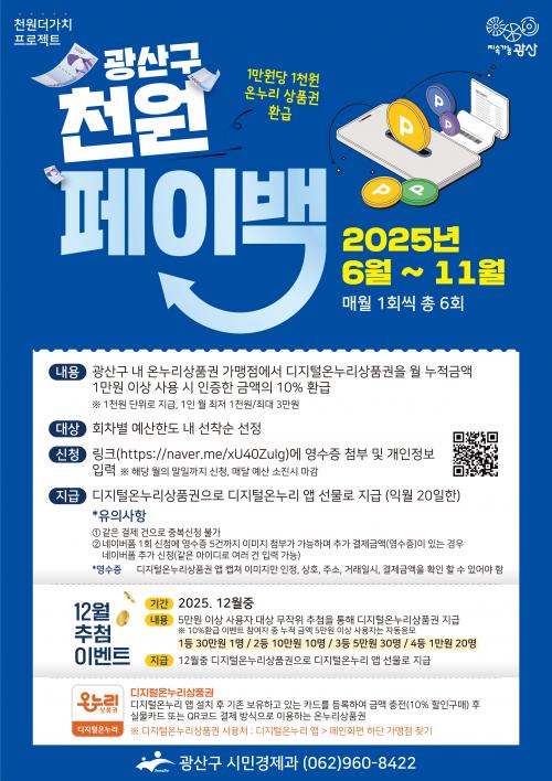 [½Åµ¿¾Æ¹æ¼Û=À强űâÀÚ] ±¤ÁÖ ±¤»ê±¸(¹Úº´±Ô ±¸Ã»Àå)°¡ ¹Î»ý°æÁ¦ Ȱ¼ºÈ­¸¦ À§ÇÑ ¡®Ãµ¿ø ´õ(The) °¡Ä¡ ÇÁ·ÎÁ§Æ®¡¯ÀÇ ÇϳªÀÎ ¿Â´©¸®»óǰ±Ç ¡®Ãµ¿ø ÆäÀ̹é(ȯ±Þ)¡¯À» 9ÀϺÎÅÍ º»°Ý ½ÃÇàÇÑ´Ù.