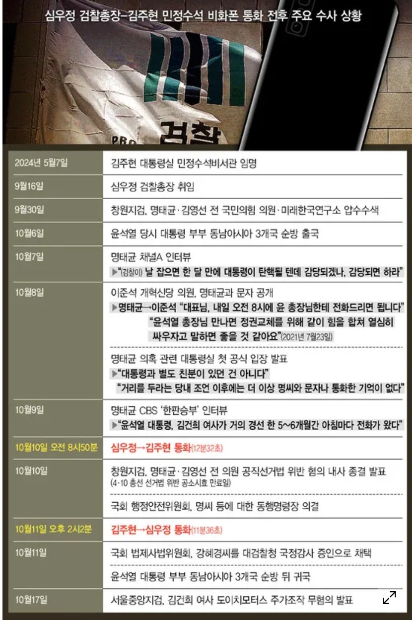 ´ë°ËÂûûÀº 16ÀÏ ¡°(½É¿ìÁ¤ÀÌ) °ËÂûÃÑÀå ÃëÀÓ Ãʱ⿡ ¹ÎÁ¤¼ö¼®À¸·ÎºÎÅÍ ÀλçÂ÷ ºñÈ­ÆùÀ¸·Î ¿¬¶ôÀÌ ¿Í¼­ °ËÂû Á¤Ã¥°ú ÇàÁ¤¿¡ °ü·Ã ÅëÈ­¸¦ ÇÑ °ÍÀ¸·Î ±â¾ïÇÑ´Ù¡±, ¡°°ËÂû »ç°Ç°ú °ü·ÃÇØ ÅëÈ­ÇÑ »ç½ÇÀº ¾ø´Ù¡±°í ¹àÇûÀ¸³ª, ½É¿ìÁ¤°ú ±èÁÖÇöÀÇ µÎ¹øÂ° ÅëÈ­ 6ÀÏ µÚ ¼­¿ïÁß¾ÓÁö°Ë ¹ÝºÎÆÐ¼ö»ç2ºÎ(ºÎÀå°Ë»ç ÃÖÀçÈÆ)´Â ±è°ÇÈñÀÇ µµÀÌÄ¡¸ðÅͽº ÁÖ°¡Á¶ÀÛ ÀÇȤ »ç°ÇÀ» ¹«ÇøÀÇ Ã³ºÐÇß´Ù.