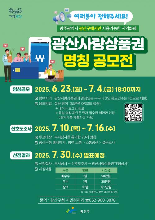 ±¤»ê±¸´Â ¡®±¤»ê»ç¶û»óǰ±Ç¡¯¿¡ ´ëÇÑ ½Ã¹ÎÀÇ °ü½ÉÀ» ³ôÀ̰í, Ȱ¼ºÈ ±â¹ÝÀ» ´ÙÁö±â À§ÇØ 23ÀϺÎÅÍ 7¿ù 4ÀÏ ¿ÀÈÄ 6½Ã±îÁö Àü ±¹¹ÎÀ» ´ë»óÀ¸·Î ¸íĪ °ø¸ðÀüÀ» ÁøÇàÇÑ´Ù.