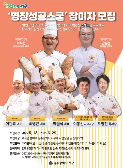 ¸íÀ强°ø½ºÄðÀº Á¶¸®ºÐ¾ß ¾ÈÀ¯¼º ¸íÀå(°¡¸ÅÀÏ½Ä ´ëÇ¥)°ú Á¦°ú¡¤Á¦»§ºÐ¾ß ¸¶¿Áõ ¸íÀå(º£ºñ¿¡¸£ ´ëÇ¥)ÀÌ ÇÔ²²ÇÏ´Â ¿ä½Ä¾÷ ºÐ¾ß û³â â¾÷°¡¸¦ À§ÇÑ ÇÁ·Î±×·¥ÀÌ´Ù.