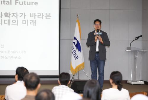 ¡®AI´Â ¼¼»óÀ» ¾î¶»°Ô ¹Ù²Ù´Â°¡?¡¯¸¦ ÁÖÁ¦·Î ¿¸° À̹ø °¿¬¿¡´Â Áø¾È±º¹Î 200¿© ¸íÀÌ Âü¿©ÇØ ¼ºÈ²À» ÀÌ·ð´Ù. Àå ¹Ú»ç´Â ³ú°úÇÐÀÚÀÇ ½Ã°¢À¸·Î ÀΰøÁö´É°ú µðÁöÅÐ ±â¼úÀÌ Àΰ£ÀÇ °¨Á¤, »ç°í¹æ½Ä, »çȸÀû ¼ÒÅë¿¡ ¾î¶² ¿µÇâÀ» ¹ÌÄ¡´ÂÁö ½±°í Èï¹Ì·Ó°Ô Ç®¾î³» Âü°¡ÀÚµéÀÇ Å« È£ÀÀÀ» ¾ò¾ú´Ù.