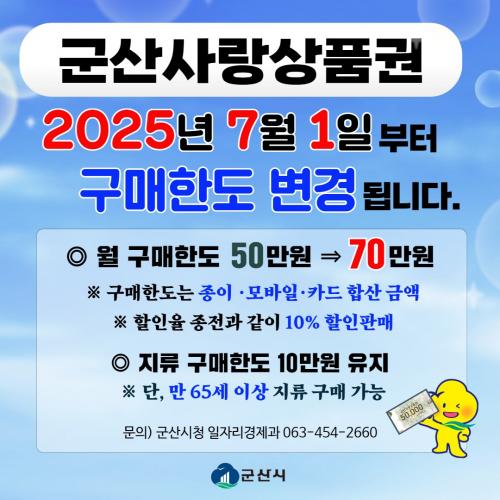 ¸ð¹ÙÀÏ ¹× Ä«µåÇü ±º»ê»ç¶û»óǰ±Ç ±¸¸Å Çѵµ°¡ ±âÁ¸ ¿ù 50¸¸ ¿ø¿¡¼ ÃÖ´ë 70¸¸ ¿øÀ¸·Î ´Ã¾î³ª¸é, ½Ã¹ÎµéÀÌ ´õ ¸¹Àº ÇÒÀÎ ÇýÅÃÀ» ´©¸®¸ç Áö¿ª ³» ¼Òºñ¸¦ Ȱ¼ºÈÇÒ ¼ö ÀÖ°Ô µÈ´Ù. ¿¹¸¦ µé¾î, »óǰ±ÇÀ» 70¸¸ ¿ø ±¸¸ÅÇϸé 7¸¸ ¿øÀÇ ÇÒÀÎ ÇýÅÃÀ» ¹ÞÀ» ¼ö ÀÖ¾î, ½ÇÁúÀûÀÎ ±¸¸Å·Â Áõ°¡ÀÇ È¿°ú°¡ ÀÖ´Ù.
