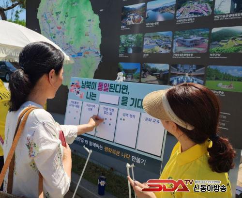 À̹ø Ä·ÆäÀÎÀº ½Ã¹ÎµéÀÌ ÀÏ»ó ¼Ó ¾ð¾î¸¦ ÅëÇØ Æòȸ¦ ½ÇõÇϰí ÅëÀÏ¿¡ ´ëÇÑ Èñ¸Á°ú ¹Ù¶÷À» ³ª´©±â À§ÇØ ¸¶·ÃµÆ´Ù. ÇöÀå¿¡¼´Â ¡®³²ºÏÀÌ ÅëÀÏµÈ´Ù¸é ³ª´Â ¡Û¡ÛÀ» ±â´ëÇØ¿ä¡¯¶ó´Â ¹®±¸ ¾Æ·¡ Âü°¡ÀÚµéÀÌ ÀÚ½ÅÀÇ ¹Ù¶÷À» ´ãÀº ½ºÆ¼Ä¿¸¦ ºÙÀ̴ üÇè Ȱµ¿ÀÌ ÁøÇàµÆ´Ù.