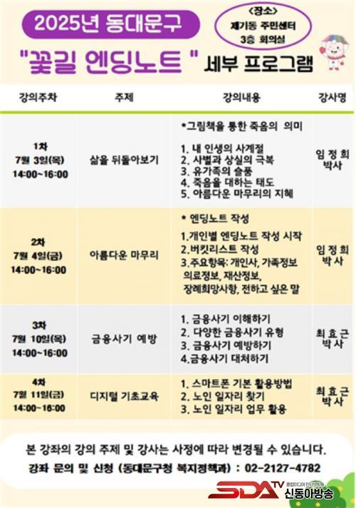 7¿ù 3, 4ÀÏ¿¡ Á¦±âµ¿Áֹμ¾ÅÍ¿¡¼ ÀÓÁ¤Èñ½É¸®»ó´ã¼¾ÅÍ ÀÓÁ¤Èñ ±³¼ö°¡ ÁøÇàÇÏ´Â °Á´ ¡®➀ »îÀ» µÚµ¹¾Æº¸±â, ➁ ¾Æ¸§´Ù¿î ¸¶¹«¸®¡¯¶ó´Â ³»¿ëÀ¸·Î Âü¿©ÀÚµéÀÌ ÀλýÀ» Á¸¾öÇÏ°Ô ¸¶¹«¸®ÇÒ ¼ö ÀÖµµ·Ï µ½´Â´Ù. ƯÈ÷ ¿£µù³ëÆ® ÀÛ¼ºÀº °¡Á·°ú ÁöÀεéÀÇ Á×À½À» ÀÚÁÖ °æÇèÇÏ°Ô µÇ´Â ³ë³â±â¿¡ Âü¿©ÀÚ°¡ Á÷Á¢ ÀÛ¼ºÇغ¸´Â ÀÛÀº À¯¾ðÀå Çü½ÄÀÇ ÇÁ·Î±×·¥À¸·Î, ³ë³â±â »îÀ» µ¹¾Æº¸°í ³²Àº ½Ã°£ÀÇ Àǹ̸¦ µÇ»õ±æ ¼ö ÀÖµµ·Ï ±¸¼ºµÇ¾î ÀÖ´Ù.