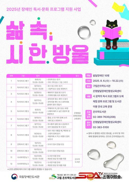 ¡®»î ¼Ó, ½Ã ÇÑ ¹æ¿ï¡¯ ÇÁ·Î±×·¥Àº ¹ß´ÞÀå¾ÖÀÎ ´ë»óÀ¸·Î Àб⠽¬¿î ½Ã ¹®ÇÐÀ» ÇÔ²² Àаí Ç¥ÇöÇÏ¸é¼ °¨¼ö¼º°ú »ç°í·ÂÀ» Ű¿ì±â À§ÇØ ¿©·¯ ½Ã ÀÛǰ°¨»ó°ú µ¶ÈÄ È°µ¿À» ÁøÇàÇÑ´Ù. ±× ¿Ü¿¡µµ âÀÇ·Â Çâ»ó¿¡ µµ¿ò µÇ´Â µµ¿¹ ¸¸µé±â üÇè °úÁ¤°ú µµ¼°ü ÀÌ¿ë ¾È³» °úÁ¤µµ ÁøÇàµÈ´Ù.