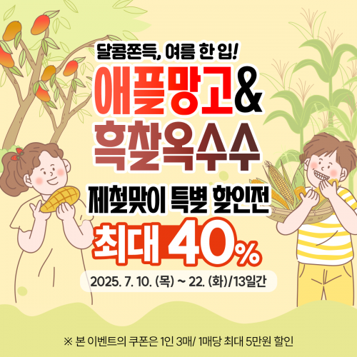 ¡®´ÞÄÞÂ˵æ, ¿©¸§ ÇÑÀÔ!¡¯À̶ó´Â ½½·Î°Ç ¾Æ·¡ ¿¸®´Â À̹ø ±âȹÀü¿¡¼´Â ¾ÖÇøÁ°í¿Í ÈæÂû¿Á¼ö¼ö¸¦ ÃÖ´ë 40% ÇÒÀÎµÈ °¡°ÝÀ¸·Î ¼±º¸ÀδÙ. ÁغñµÈ »óǰ ¼ÒÁø ½Ã Çà»ç´Â Á¶±â Á¾·áµÉ ¼ö ÀÖ´Ù.