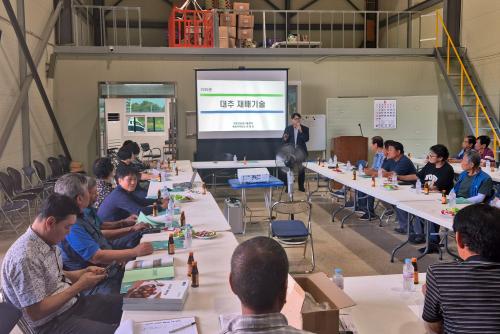 À̹ø ±³À°Àº »ç°ú´ëÃ߸¦ Àç¹è ÁßÀ̰ųª °ü½É ÀÖ´Â ³ó¾÷ÀÎ 50¿© ¸íÀÌ Âü¼®ÇÑ °¡¿îµ¥, ±¹³» ´ëÇ¥ÀûÀÎ ´ëÃß ÁÖ»êÁö º¸Àº±º¿¡¼ ´ëÃß Àç¹è±â¼úÀ» Àü¹®ÀûÀ¸·Î Áöµµ¡¤±³À°Çϰí ÀÖ´Â ³ó¾÷±â¼ú¼¾ÅÍ ±Ç¿µÁØ ÆÀÀåÀ» °»ç·Î ÃÊûÇÏ¿© ±³À°À» ÁøÇàÇÏ¿´´Ù.