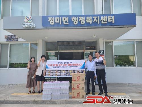 À̳¯ ÀçÀÎÁ¤¹Ì¸é¹Îȸ´Â Á¤¼ºÀ» ´ã¾Æ ÁغñÇÑ ÄŶó¸é 560°³, »ý¼ö 180º´, À½·á¼ö 300º´ µî ¹°Ç°À» Á÷Á¢ Àü´ÞÇÏ¸ç °íÇâÀ» ÇâÇÑ ±íÀº ¾ÖÁ¤À» ÀüÇß´Ù.