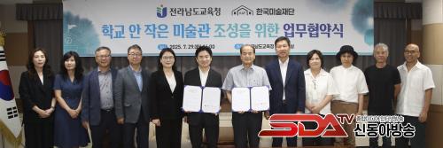 Àü³²±³À°Ã»°ú Çѱ¹¹Ì¼úÀç´ÜÀº 29ÀÏ Ã»»ç ºñÁî´Ï½º½Ç¿¡¼ ¡®Çб³ ¾È ÀÛÀº ¹Ì¼ú°ü »ç¾÷À» À§ÇÑ ¾÷¹«Çù¾à¡¯À» ü°áÇϰí, ÇлýµéÀÌ ÀÏ»ó¼Ó¿¡¼ ¿¹¼úÀÛǰÀ» °¨»óÇϸç âÀǷ°ú °¨¼ö¼ºÀ» Ű¿ï ¼ö ÀÖµµ·Ï Çб³¿¹¼ú±³À° ±â¹ÝÀ» ±¸ÃàÇÏ´Â µ¥ ÈûÀ» ¸ðÀ¸±â·Î Çß´Ù.