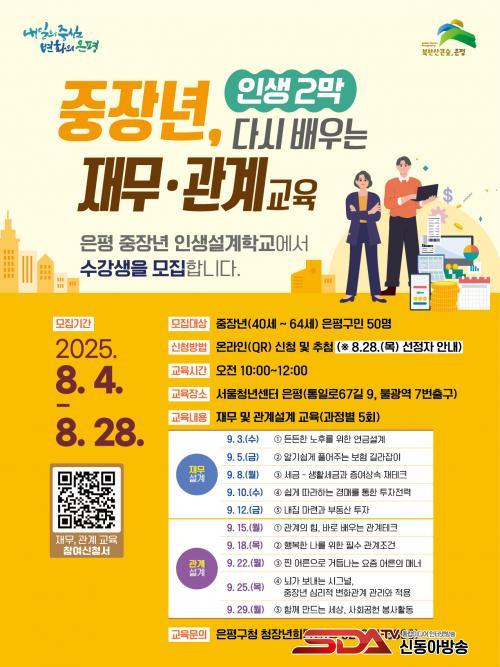 À̹ø ¡®ÁßÀå³â Àλý¼³°èÇб³¡¯¿¡¼´Â À繫¼³°è, °ü°è¼³°è °Á°¡ ÁøÇàµÈ´Ù. ±³À° ½ÅûÀº 8¿ù 4ÀϺÎÅÍ 28ÀϱîÁö´Ù. ¸ðÁý ´ë»óÀº 40¼¼ºÎÅÍ 64¼¼±îÁöÀÇ ÀºÆò±¸¹ÎÀ¸·Î ºÐ¾ßº° 25¸í, ÃÑ 50¸íÀ» ¸ðÁýÇϸç Ãß÷À» ÅëÇØ ±³À°»ýÀ» ¼±Á¤ÇÑ´Ù.
