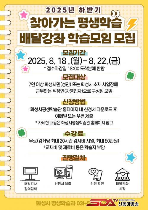 2025³â ÇϹݱ⿡´Â ÃÑ 48°³ÀÇ ÇнÀ¸ðÀÓÀ» ¸ðÁýÇϸç, ¼±Á¤µÈ ¸ðÀÓ¿¡´Â ÃÖ´ë 20½Ã°£ºÐÀÇ °»ç·á°¡ Áö¿øµÈ´Ù. ¼ö°·á´Â ¾øÀ¸³ª, Àç·áºñ¿Í ±³Àçºñ µîÀº ÇнÀÀÚ°¡ ºÎ´ãÇØ¾ß ÇÑ´Ù.