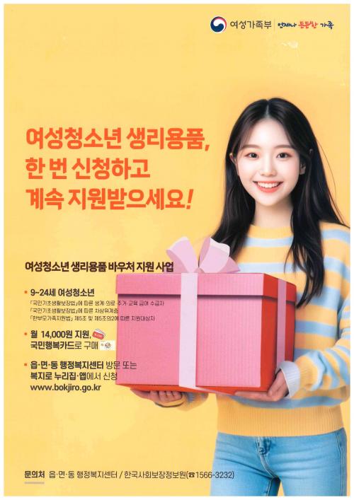 11ÀÏ ½Ã´Â °æÁ¦Àû ¿©°ÇÀ¸·Î »ý¸®¿ëǰ ±¸¸Å¿¡ ¾î·Á¿òÀ» °Þ´Â ¿©¼º û¼Ò³âÀ» À§ÇØ ¡®Àú¼ÒµæÃþ ¿©¼º û¼Ò³â »ý¸®¿ëǰ ¹Ù¿ìó Áö¿ø»ç¾÷¡¯À» ÃßÁø ÁßÀ̶ó°í ¹àÇû´Ù.