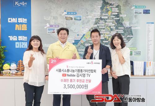 [½Åµ¿¾Æ¹æ¼Û ½ÃÈï½Ã=À̽ŵ¿±âÀÚ] ½ÃÈï½Ã´Â Áö³­ 8¿ù 11ÀÏ ¼Ò³ª±âÅë±âŸ¿¬ÇÕȸ(¼ÒÅë¤ý³ª´®¤ý±â»Ý)¿Í À¯Æ©ºê ä³Î ¡®±è½Ã¿µTV¡¯°¡ ½ÃÈï½Ã1%º¹ÁöÀç´Ü(ÀÌÇÏ, º¹ÁöÀç´Ü)À» ÅëÇØ ¼öÀç¹Î Áö¿øÀ» À§ÇÑ ÈÄ¿ø±Ý 350¸¸ ¿øÀ» ±âŹÇß´Ù°í ¹àÇû´Ù.