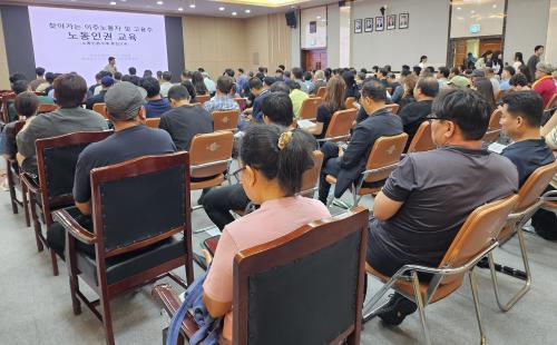 Áö³ 12ÀÏ ³ªÁÖ½Ãû¿¡¼ ¿¸° ù ±³À°¿¡¼± ³ªÁÖ ¿Ü±¹ÀÎ °í¿ë»ç¾÷Àå °í¿ëÁÖ 200¿© ¸íÀÌ Âü¼®ÇØ ¡®2025 ¿Ü±¹ÀÎ °í¿ë»ç¾÷Àå ³ëµ¿À뱂 ±³À°¡¯À» À̼öÇϰí, ÇöÀåÀÇ °í¹Î°ú ¾Ö·Î»çÇ×À» °øÀ¯Çß´Ù.