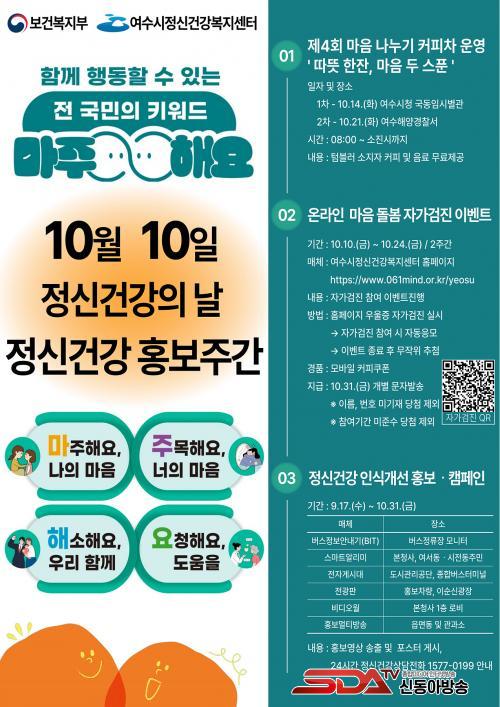 [½Åµ¿¾Æ¹æ¼Û ¿©¼ö=±è±â³² ±âÀÚ] ¿©¼ö½Ã(½ÃÀå Á¤±â¸í)´Â Á¤½Å°Ç°­ÀÇ ³¯(10¿ù 10ÀÏ)À» ±â³äÇØ 10¿ù 10ÀϺÎÅÍ 24ÀϱîÁö ¡®2025³â Á¤½Å°Ç°­ È«º¸ÁÖ°£¡¯À» ¿î¿µÇÑ´Ù.
