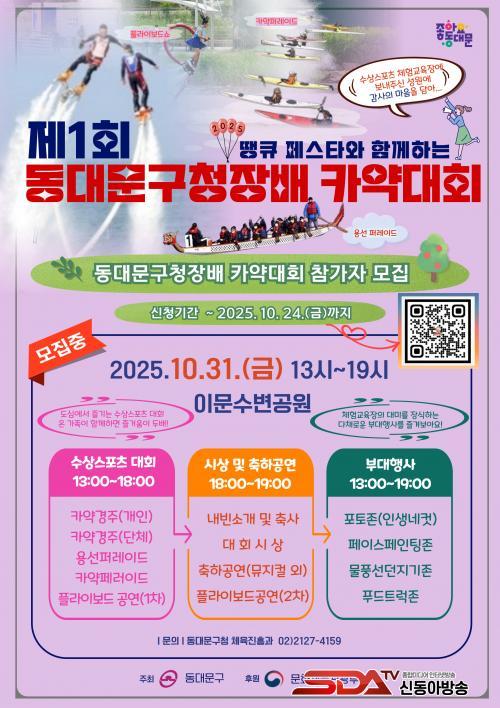 Ä«¾à´ëȸ´Â ±¸¹Î ´©±¸³ª Âü¿© °¡´ÉÇÑ ´ëȸ·Î, ¸ðÁý ºÎ¹®Àº ½ºÅĵå¾÷ ÆÐµéº¸µå(SUP) °³ÀÎÀü, Ä«¾à °³ÀÎÀü¡¤´ÜüÀü(2ÀÎ 1Á¶)À¸·Î ÁøÇàµÈ´Ù. Âü°¡ ½ÅûÀº 24ÀϱîÁö QRÄڵ带 ÅëÇØ ³×À̹öÆûÀ¸·Î Á¢¼ö °¡´ÉÇÏ´Ù.