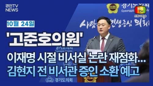 °æ±âµµÀÇȸ °íÁØÈ£ ÀÇ¿ø(±¹¹ÎÀÇÈû¡¤ÆÄÁÖ1)ÀÌ ¿À´Â °æ±âµµ ÇàÁ¤»ç¹«°¨»ç¿¡¼ ±èÇöÁö Àü °æ±âµµÃ» ºñ¼°üÀÇ ÁõÀÎ Ãâ¼®À» °ø½Ä ¿¹°íÇϸé¼, ÀÌÀç¸í Àü °æ±âµµÁö»ç ÀçÀÓ ½ÃÀý µµÁ¤ ¿î¿µ Àü¹Ý¿¡ ´ëÇÑ ³í¶õÀÌ ´Ù½Ã ºÒºÙ°í ÀÖ´Ù.