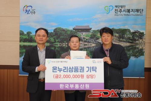 [½Åµ¿¾Æ¹æ¼Û °æ³²ÁøÁÖ=³²±Ã¿µ±â±âÀÚ] Çѱ¹ºÎµ¿»ê¿øÀº Áö¿ª»çȸÀÇ ¾î·Á¿î ÀÌ¿ôÀ» µ½±â À§ÇØ ¿Â´©¸®»óǰ±Ç 1¸¸ ¿ø±Ç 200¸Å(ÃÑ 200¸¸ ¿ø)À» ÁøÁֽú¹ÁöÀç´Ü¿¡ ±âŹÇß´Ù.