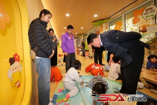 ÀÌÇÊÇü µ¿´ë¹®±¸Ã»ÀåÀÌ ¼­¿ïÇü ŰÁîÄ«Æä ¡®»õ»ù°ø¿øÁ¡¡¯À» ¹æ¹®ÇØ ¾ÆÀ̵éÀÌ ³ë´Â ¸ð½ÀÀ» ÁöÄѺ¸°í ÀÖ´Ù.