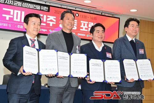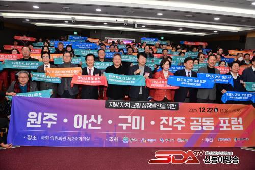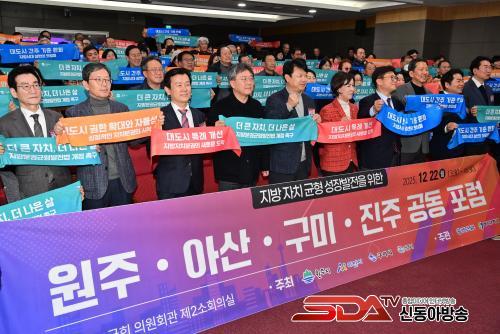 ƯÈ÷ À̳¯ Æ÷·³¿¡¼´Â ÁøÁÖ¡¤¿øÁÖ¡¤¾Æ»ê¡¤±¸¹Ì½Ã µî 4°³ã¼ ½ÃÀåÀÌ °øµ¿¼±¾ð¹®¿¡ ¼¸íÇϰí, Àα¸ 30¸¸ ¸í¡¤¸éÀû 500§´ ÀÌ»óÀÇ Áö¹æÀÚÄ¡´Üü¿¡ ´ëµµ½Ã Ư·Ê¸¦ ºÎ¿©ÇÒ ¼ö ÀÖµµ·Ï ¡ã¡¸Áö¹æÀÚÄ¡ºÐ±Ç ¹× Áö¿ª±ÕÇü¹ßÀü¿¡ °üÇÑ Æ¯º°¹ý¡¹ ÀϺΰ³Á¤¾ÈÀÇ Á¶¼ÓÇÑ Åë°ú ¡ãÁö¹æ °ÅÁ¡µµ½ÃÀÇ ÀÚÀ²Àû ¼ºÀå ¿©°ÇÀ» µÞ¹ÞħÇÒ Á¦µµÀû ±â¹Ý ¸¶·Ã ¡ã½ÇÁúÀûÀÎ ±ÇÇÑ À̾ç°ú ¹Ì·¡ ¼ºÀå µ¿·Â Áö¿øÀ» Á¤ºÎ¿Í ±¹È¸¿¡ °øµ¿À¸·Î °ÇÀÇÇß´Ù.
