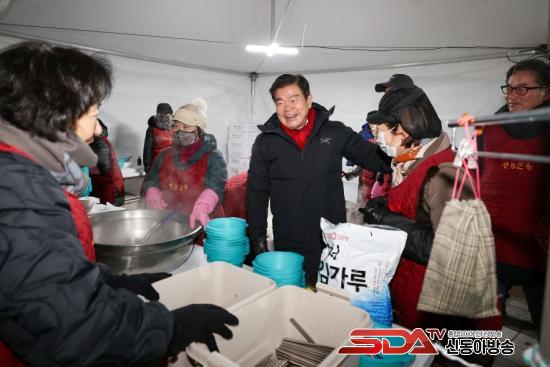 ¿ÃÇØµµ ±× ½ÄŹÀº ³Ë³ËÇß´Ù. ÇÑÆÄÁÖÀǺ¸°¡ ¿¹º¸µÈ Ãß¿î ³¯¾¾¿¡µµ ¾à 5000¿© ¸íÀÌ ¹èºÀ»êÀ» ã¾Ò°í, ¿ÀÀü 9½Ã±îÁö ¶±±¹ 3600¿© ±×¸©ÀÌ ³ª´²Á³´Ù. ¸¶À»Çà»çÃßÁøÀ§¿øÈ¸¿Í ÀÚ¿øºÀ»çÀÚµé, Àü³ó2µ¿À» ºñ·ÔÇÑ µ¿´ë¹®±¸ À¯°üºÎ¼ Á÷¿øµéÀº »õº®ºÎÅÍ ¼Õ¹ßÀ» ¸ÂÃè´Ù. ¶ß°Å¿î ±×¸©À» °Ç³×¸ç ¡°Á¶½ÉÇϼ¼¿ä¡±¸¦ µÇÇ®ÀÌÇß°í, ¾ÆÀ̵鿡°Õ ±¹¹°À» ½ÄÇô ÁÖ¸ç ¡°ÃµÃµÈ÷¡±¸¦ ´õÇß´Ù. ±× ¸ðµç µðÅ×ÀÏÀÌ ÀÌ Çà»ç¸¦ ¡®µ¿³×°¡ ½º½º·Î °¡²Ù´Â »õÇØ dz°æ¡¯À¸·Î ¸¸µé¾ú´Ù.