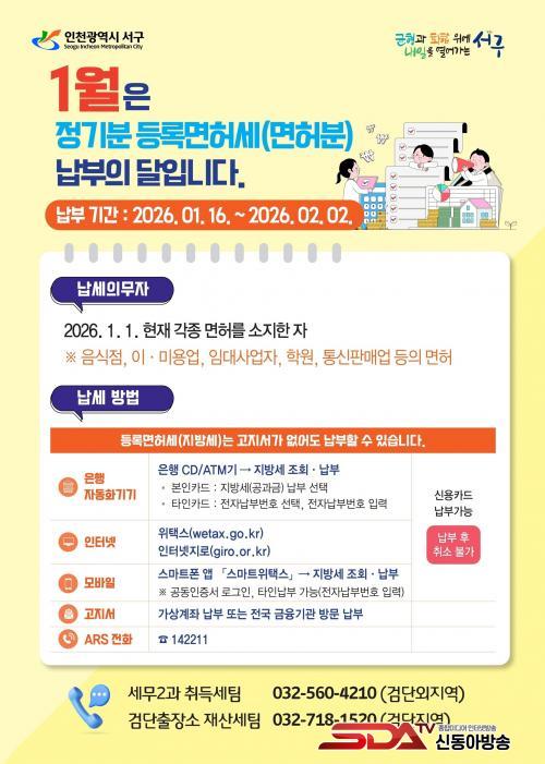 ³³ºÎ ±âÇÑÀº ¿ÃÇØ 2¿ù 2ÀϱîÁöÀÌ´Ù. Áö¹æ¼¼ ³³ºÎ´Â °íÁö¼°¡ ¾øÀ̵µ °¡´ÉÇÏ¸ç ¡ãÀü±¹ ±ÝÀ¶±â°ü ¹æ¹® CD/ATM(Çö±ÝÀÚµ¿ÀÔÃâ±â) Á¶È¸ ³³ºÎ ¡ãARS(¢Ï142211) ÀüÈ ³³ºÎ ¡ãÀÎÅͳݻçÀÌÆ® À§Åýº(www.wetax.go.kr), ÀÎÅÍ³Ý Áö·Î(www.giro.or.kr)¿¡¼ Á¶È¸ ³³ºÎ ¡ã½º¸¶Æ® À§Åýº(¾Û)¸¦ ÅëÇÑ ¸ð¹ÙÀÏ ³³ºÎ°¡ °¡´ÉÇÏ´Ù. ŸÀÎ Ä«µå·Î ³³ºÎÇÒ °æ¿ì °íÁö¼¿¡ ±âÀçµÈ ÀüÀÚ³³ºÎ¹øÈ£¸¦ Á¶È¸ÇØ ³³ºÎÇÏ¸é µÈ´Ù.