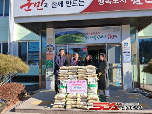 [½Åµ¿¾Æ¹æ¼Û °æ³²ÇÔ¾È=À̽ŵ¿±âÀÚ] ÇԾȱº »êÀθéÀº Áö³­ 9ÀÏ ÇԾȱº»çȸº¹ÁöÇùÀÇȸ°¡ ¼³ ¸íÀýÀ» ¸Â¾Æ »êÀθé Àú¼Òµæ°èÃþÀ» ´ë»óÀ¸·Î ¹é¹Ì 10kg 40Æ÷¸¦ Áö¿øÇÏ¸ç µû¶æÇÑ ³ª´®À» ½ÇõÇß´Ù°í ¹àÇû´Ù.