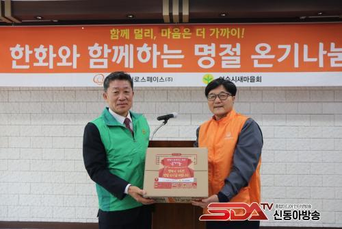 À̵¿±Ù ȸÀåÀº ¡°¾î·Á¿î ÀÌ¿ôµéÀÌ µû¶æÇÑ ¸íÀýÀ» º¸³»´Âµ¥ Á¶±ÝÀ̳ª¸¶ º¸ÅÆÀÌ µÇ±æ ¹Ù¶õ´Ù¡±¸ç ¡°±â¾÷ÀÇ µû¶æÇÑ ³ª´®°ú ÀÌ¿ôÀ» ÇâÇÑ »õ¸¶À»°¡Á·ÀÇ Á¤¼ºÀÌ ´õÇØÁø ¸¸Å­ ¾ÕÀ¸·Îµµ ¼Ò¿ÜµÇ´Â ÀÌ¿ôÀÌ ¾øµµ·Ï ¼¼½ÉÈ÷ »ìÇǰí, Áö¼ÓÀûÀÎ ³ª´®°ú ºÀ»ç¸¦ ½ÇÃµÇØ ³ª°¡°Ú´Ù¡±°í ¹àÇû´Ù.