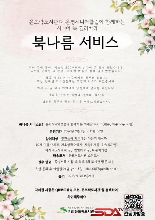 ¡®ºÏ³ª¸§¡¯Àº µµ¼°ü ¹æ¹®ÀÌ ¾î·Á¿î Áø°üµ¿ Áֹο¡°Ô Ã¥À» °¡Á¤À¸·Î ¹è´ÞÇÏ´Â ¼ºñ½º·Î, ÀºÆò½Ã´Ï¾îŬ·´°ú ¿¬°èÇØ Áö¿ª ¾î¸£½ÅÀÌ ¹è´Þ¿¡ Âü¿©ÇÔÀ¸·Î½á µ¶¼º¹Áö ½ÇÇö°ú ³ëÀÎÀÏÀÚ¸® âÃâÀ» ÇÔ²² µµ¸ðÇϰí ÀÖ´Ù.