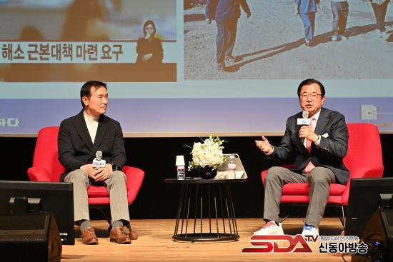 ÀÌÇöÀç Çϳ²½ÃÀå(¿À¸¥ÂÊ)°ú ÀÓÅÂÈñ °æ±âµµ±³À°°¨ÀÌ Áö³­ 2025³â 11¿ù 26ÀÏ Çϳ²±³À° ÅäÅ©Äܼ­Æ® ¡¸ÇÏÀÌ Çϳ²! ¹Ì·¡±³À°µµ½Ã·Î µðÀÚÀÎÇÏ´Ù¡¹¿¡ Âü¼®ÇØ Âü¼®ÀÚµé°ú ´ë´ãÀ» ³ª´©°í ÀÖ´Ù.