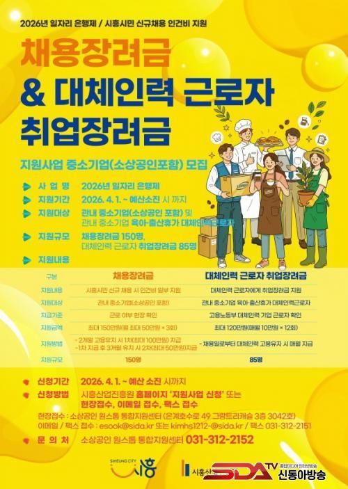 [½Åµ¿¾Æ¹æ¼Û ½ÃÈï½Ã=À̽ŵ¿±âÀÚ] ½ÃÈï½Ã´Â °ü³» Áß¼Ò±â¾÷ÀÇ ½Å±Ô ä¿ëÀ» ÃËÁøÇÏ°í ¾ÈÁ¤ÀûÀÎ °í¿ë âÃâÀ» À§ÇØ ¡®2026³â ÀÏÀÚ¸® ÀºÇàÁ¦¡¯ »ç¾÷ Âü¿©ÀÚ ¸ðÁýÀ» 4¿ù 1ÀϺÎÅÍ ½ÃÀÛÇÑ °¡¿îµ¥ ¿¹»ê ¼ÒÁø ½Ã±îÁö ÁøÇàÇÑ´Ù.