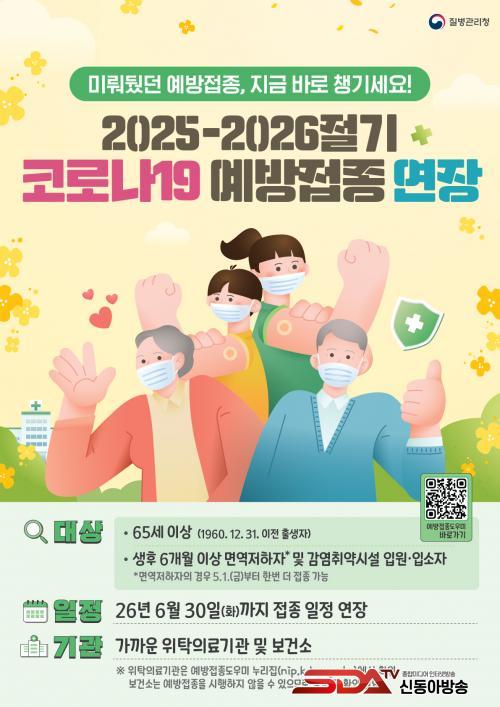 ¿¬Àå ±â°£ ³» Á¢Á¾ÀÌ °¡´ÉÇÑ ´ë»óÀº 2025-2026Àý±â Äڷγª19 ¹é½ÅÀ» ¾ÆÁ÷ Á¢Á¾ÇÏÁö ¾ÊÀº 65¼¼ ÀÌ»ó ¾î¸£½Å ¹× °íÀ§Ç豺(¸é¿ªÀúÇÏÀÚ, °¨¿°Ãë¾à½Ã¼³ ÀÔ¿ø¡¤ÀÔ¼ÒÀÚ)°ú ±â Á¢Á¾ÀÚ Áß ¸é¿ªÀúÇÏÀÚ´Ù.
