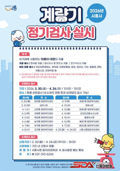 ÇÑÆí, Á¤±â°Ë»ç µ¿º° ÀÏÁ¤°ú Àå¼Ò´Â ½ÃÈï½Ãû ´©¸®ÁýÀÇ °í½Ã°ø°í¸¦ ÅëÇØ È®ÀÎÇÒ ¼ö ÀÖÀ¸¸ç, ÀÚ¼¼ÇÑ »çÇ×Àº ½ÃÈï½Ã ÀÏÀÚ¸®°æÁ¦°ú·Î ¹®ÀÇÇÏ¸é ¾È³»¹ÞÀ» ¼ö ÀÖ´Ù.