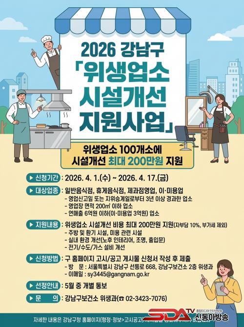 [½Åµ¿¾Æ¹æ¼Û °­³²±¸=À̽ŵ¿±âÀÚ] ²ÞÀÌ ¸ðÀÌ´Â µµ½Ã, ¹Ì·¡¸¦ ±×¸®´Â °­³²±¸°¡ °æ±âħü¿Í ¸ÅÃâ °¨¼Ò·Î ¾î·Á¿òÀ» °Þ´Â À§»ý¾÷¼ÒÀÇ ¿µ¾÷ȯ°æ °³¼±À» À§ÇØ ¡®À§»ý¾÷¼Ò ½Ã¼³°³¼± Áö¿ø»ç¾÷¡¯À» ÃßÁøÇÑ´Ù. °­³²±¸ ³» ÀϹÝÀ½½ÄÁ¡, ÈÞ°ÔÀ½½ÄÁ¡, Á¦°úÁ¡¿µ¾÷, ÀÌ¡¤¹Ì¿ë¾÷¼Ò µî 100°³¼Ò¸¦ ´ë»óÀ¸·Î ¾÷¼Ò´ç ÃÖ´ë 200¸¸ ¿øÀÇ ½Ã¼³°³¼± ºñ¿ëÀ» Áö¿øÇÑ´Ù.
