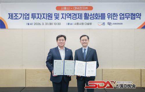 [½Åµ¿¾Æ¹æ¼Û ½ÃÈï½Ã=À̽ŵ¿±âÀÚ] ½ÃÈï½Ã´Â Áö³­ 3¿ù 31ÀÏ ½Ãû ´Ù½½¹æ¿¡¼­ ´ë´öÀüÀÚ(ÁÖ)¿Í ¡®Á¦Á¶±â¾÷ ÅõÀÚÁö¿ø ¹× Áö¿ª°æÁ¦ Ȱ¼ºÈ­¸¦ À§ÇÑ ¾÷¹«Çù¾à¡¯À» ü°áÇß´Ù.
