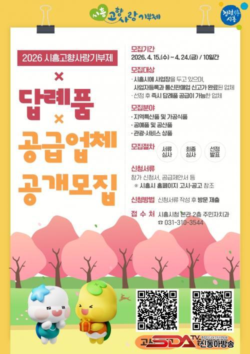 [½Åµ¿¾Æ¹æ¼Û ½ÃÈï½Ã=À̽ŵ¿±âÀÚ] ½ÃÈï½Ã´Â °íÇâ»ç¶û±âºÎÁ¦ Ȱ¼ºÈ­¿Í Áö¿ª Ư»öÀ» ¹Ý¿µÇÑ ´ä·Êǰ ¹ß±¼À» À§ÇØ ¡®2026³â °íÇâ»ç¶û±âºÎÁ¦ ´ä·Êǰ ¹× °ø±Þ¾÷ü¡¯¸¦ °ø°³ ¸ðÁýÇϸç 4¿ù 15ÀϺÎÅÍ 24ÀϱîÁö 10Àϰ£ ½Åû¤ýÁ¢¼ö¸¦ ¹Þ´Â´Ù.