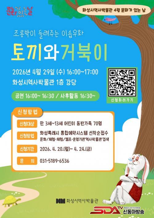 °ø¿¬Àº 4¿ù 29ÀÏ ¿ÀÈÄ 4½ÃºÎÅÍ È¼ºÆ¯·Ê½Ã ¿ª»ç¹Ú¹°°ü 1Ãþ °´ç ¹× ¼¼¹Ì³ª½Ç¿¡¼ 60ºÐ°£ ÁøÇàµÇ¸ç, ¸¸ 3¼¼ºÎÅÍ 13¼¼±îÁö Âü¿©ÇÒ ¼ö ÀÖ´Ù. °ü¶÷ ÀοøÀº ¼±Âø¼ø 70¸íÀ¸·Î Á¦ÇѵȴÙ.