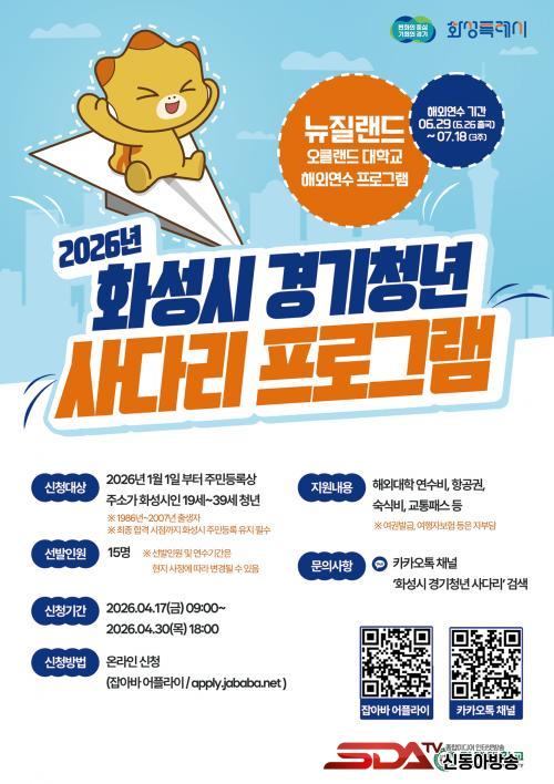½Ã´Â 4¿ù 17ÀϺÎÅÍ 4¿ù 30ÀÏ 18½Ã±îÁö 2ÁÖ°£ ¡®2026³â ȼº½Ã °æ±âû³â »ç´Ù¸® ÇÁ·Î±×·¥ 2±â¡¯ Âü¿©ÀÚ 15¸íÀ» ¸ðÁýÇÑ´Ù°í ¹àÇû´Ù.