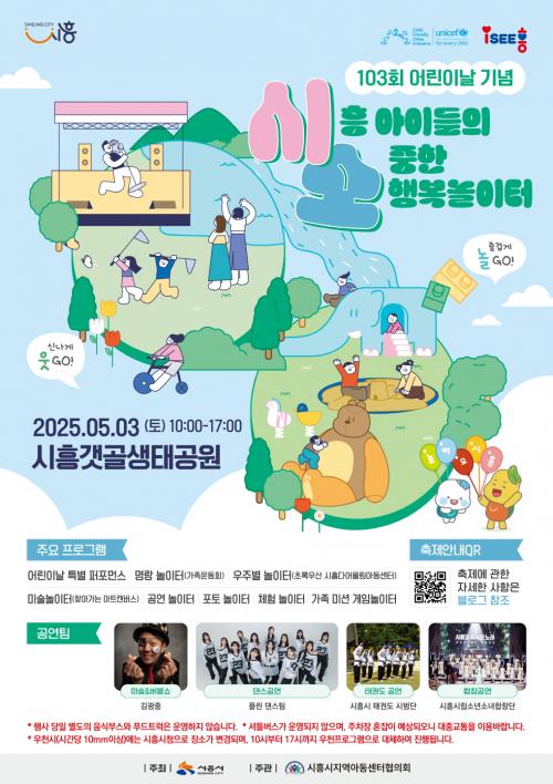 [½Åµ¿¾Æ¹æ¼Û ½ÃÈï½Ã=À̽ŵ¿±âÀÚ] ½ÃÈï½Ã°¡ ¿À´Â 5¿ù 3ÀÏ ¿ÀÀü 10½ÃºÎÅÍ ¿ÀÈÄ 5½Ã±îÁö ½ÃÈï°¹°ñ»ýŰø¿ø¿¡¼­ ¡®Á¦103ȸ ¾î¸°À̳¯ ±â³äÇà»ç¡¯¸¦ °³ÃÖÇÑ´Ù. Çà»ç´Â ¡®½ÃÈï ¾ÆÀ̵éÀÇ ¼ÒÁßÇÑ Çູ³îÀÌÅÍ¡¯¶ó´Â ÁÖÁ¦·Î ½ÃÈï½ÃÁö¿ª¾Æµ¿¼¾ÅÍÇùÀÇȸ°¡ ÁÖ°üÇϸç, ¿Â °¡Á·ÀÌ ÇÔ²²¡¦